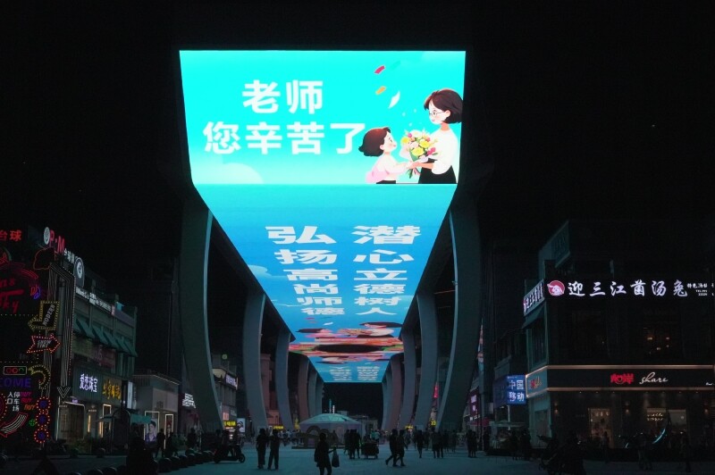 9月9日晚,第40个教师节来临之际,在内江高新区万晟天街,长300米、宽25米的中国西南最大单体户外led屏“点亮”了夜空,向广大人民教师致敬,为他们送上深切祝福。
