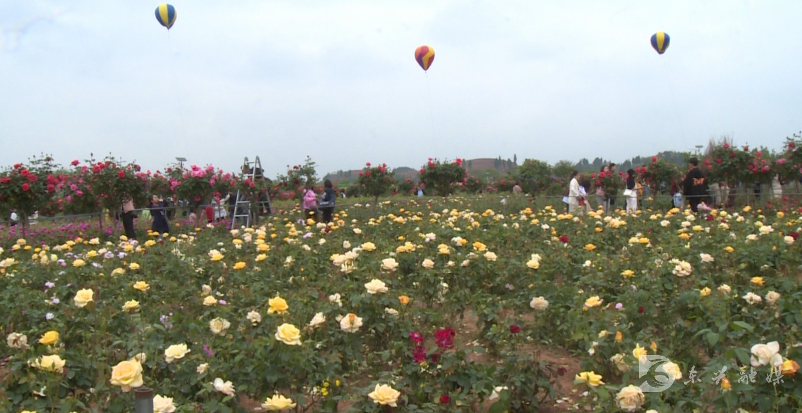 4月4日,记者走进长江田园玫瑰花海,映入眼帘的是被誉为“皇冠”的大马士革玫瑰,其中既有连片绽放的玫瑰新苗,又有成排精壮的玫瑰老树,都呈现出一派姹紫嫣红景象,绽放的鲜花吸引了众多游客的镜头。