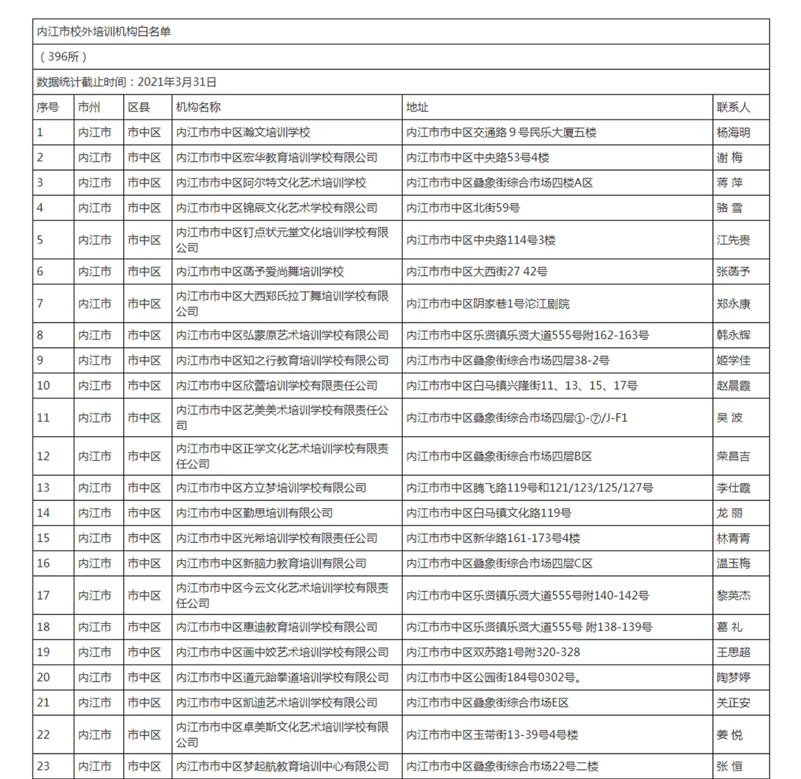 最新!内江2021年3月校外培训机构黑白名单公布!
