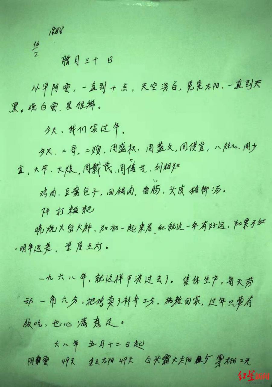 ↑1968年除夕,周载茂所写的日记