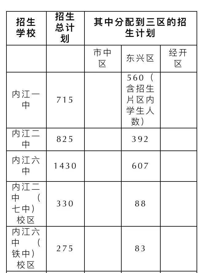 根据《2021年内江市主城区小升初招生工作方案》和相关文件精神,结合三区小升初招生人数和初中招生学校实际,确保所有符合条件的适龄儿童少年均有一个公办学位,按照属地管理和统筹兼顾原则,现将2021年内江市主城区小升初招生计划下达如下(见下表),请认真遵照执行。