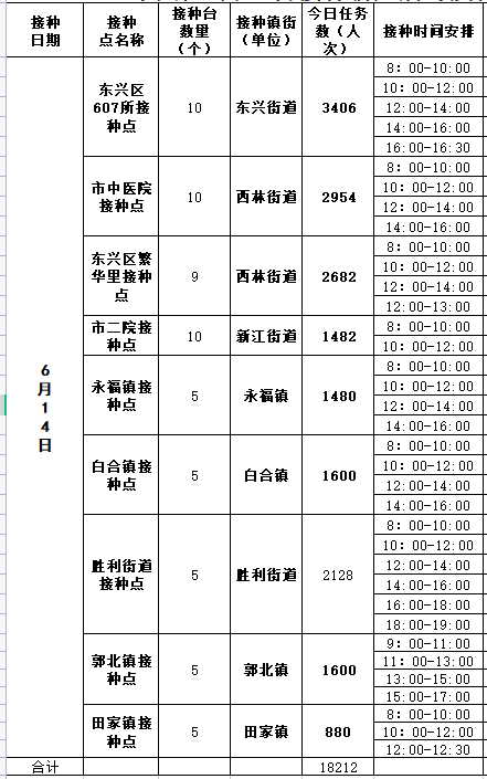 时间:2021-06-14 15:02:14 来源:微东兴为了方便居民就近接种新冠疫苗,端午假期疫苗接种不停歇,内江市东兴区已在相关片区开设疫苗接种点,具体时间安排如下: