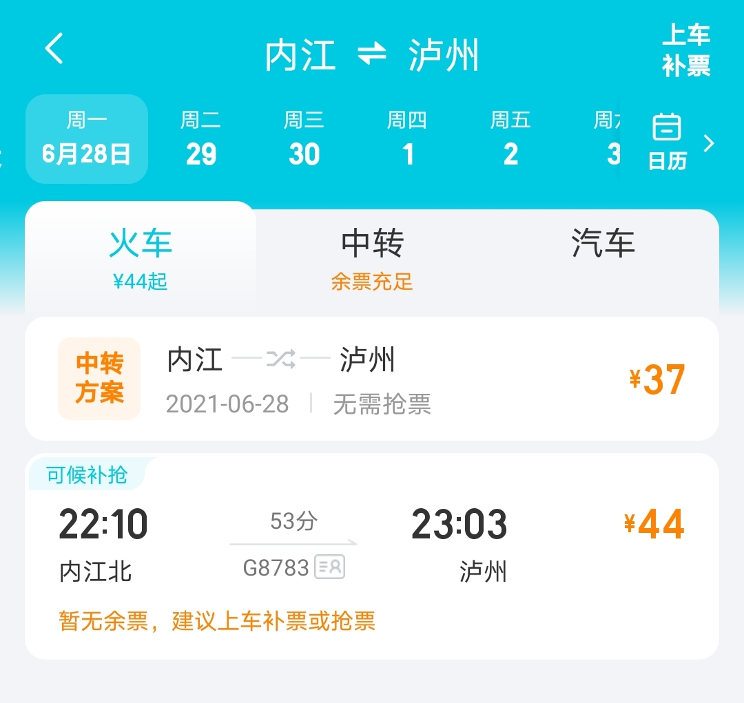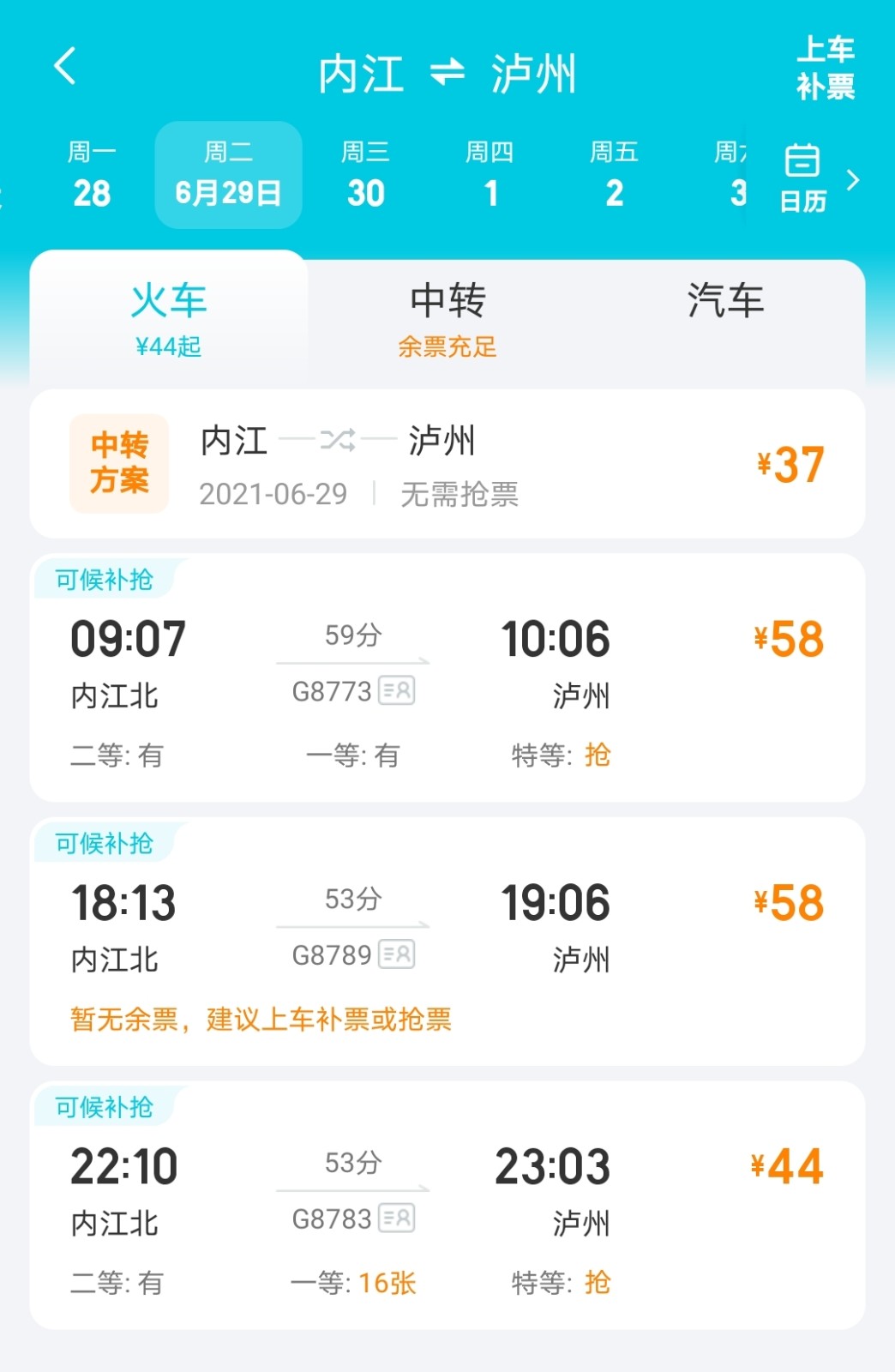 目前12306官网渠道已开始售票,江粉儿先替大家查了下,内江到泸州、自贡的车次、票价如下,具体情况可自行查询铁路12306网站、客户端。