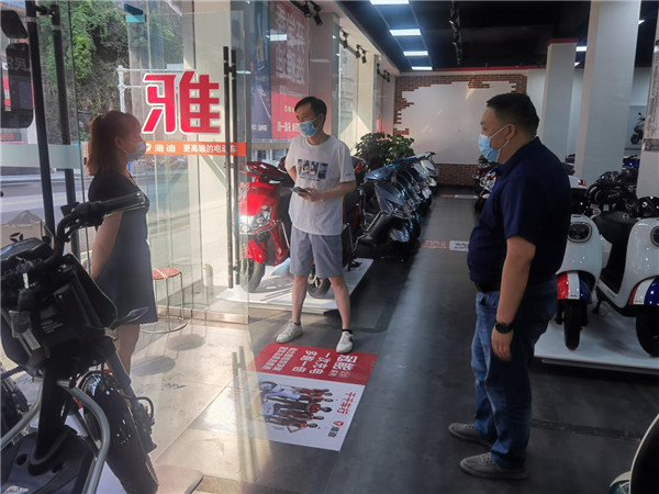 检查中,执法人员发现:重龙镇雅迪三个店均未严格落实防控要求,卖场工作人员部分未带口罩,店铺进口未张贴场所码,无专人值守,无信息登记本,工作人员对防控要求不清楚。执法人员现场责令立即暂停营业、自查整改,整改验收合格后方可经营。