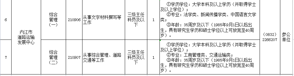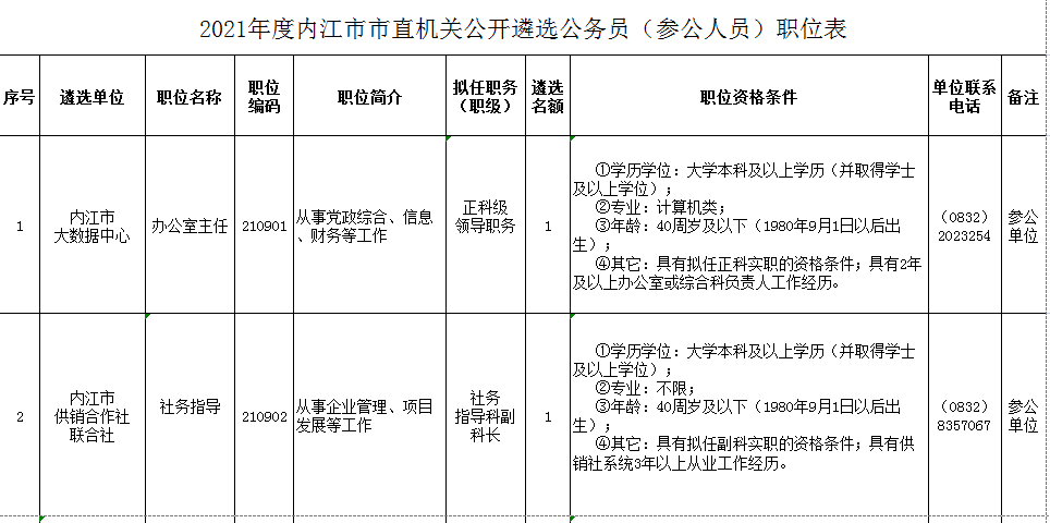 一级主任科员及以下职级职位(详见《2021年度内江市市直机关公开遴选公务员(参公人员)职位表》)。