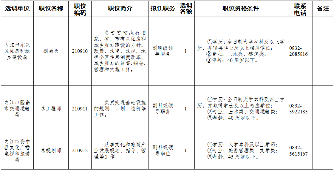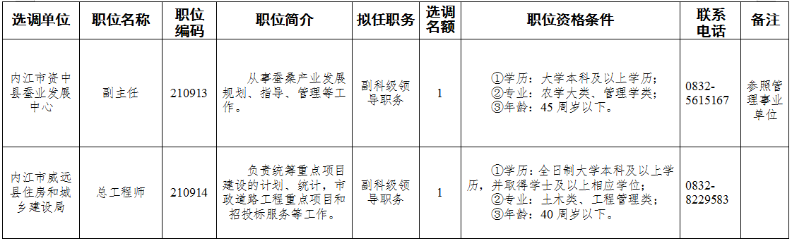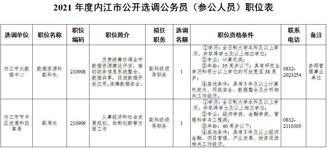 根据公务员法、《公务员调任规定》《四川省公务员调任实施办法》和《内江市公务员调任管理办法》等有关规定,市委组织部决定统筹开展2021年度公开选调公务员(参公人员)工作。现将有关事项公告如下。