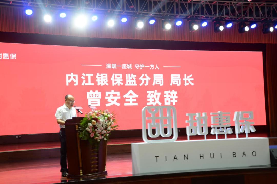 发布会上,内江市人民政府周宁副秘书长、内江市医疗保障局局长倪恒利、内江银保监分局局长曾安全在主持人的引导下现场投保,为支持构建内江多层次社会医疗保障体系添一份力,以实际行动表示对“甜惠保”产品的支持,为健康内江做表率!守护人民、守护城市、从守护自己健康开始。
