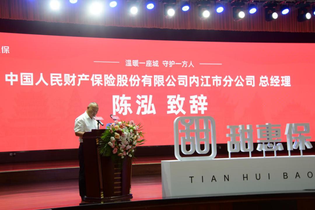 发布会现场,“甜惠保”共保商业保险公司主承保单位中国人民财产保险股份有限公司内江市分公司总经理陈泓作为共保体代表表示,“甜惠保”结合内江市医保政策、医疗保障水平,是内江市第一款惠民补充医疗保险,共保体公司将继续在各职能部门的帮助和指导下,积极深化服务范围、提高服务质量、创新服务模式,充分发挥商业保险机构在品牌、技术、服务等方面的优势,为完善民生保障体系、服务健康内江做出更大的贡献,切实履行好保险企业的政治责任、经济责任和社会责任。