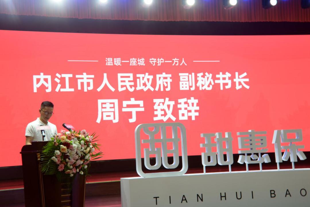时间:2021-09-03 19:34:31 来源:内江广播电视台9月3日,专为内江医保参保人定制的普惠型补充医疗保障产品“甜惠保”在内江国际酒店汉安厅举行发布会。内江市人民政府副秘书长周宁、内江市医疗保障局局长倪恒利 、内江市银保监分局局长曾安全 、内江市医疗保障局副局长袁成军 、内江市银保监分局副局长李通、内江市保险行业协会秘书长姚盛出席会议,共同见证内江人的专属补充医疗保障产品——“甜惠保”的诞生。