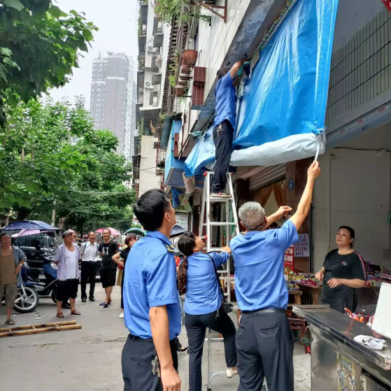 继前期城区环境综合整治取得一定效果后,资中县综合执法局精心组织,安排城北片区城市管理综合行政执法大队三、四中队执法队员继续联合执法,开展对城北片区市容市貌新一轮的综合整治。此次整治主要目标:取缔城北片区所有出店经营、流动摊点占道经营、拆除违章撑杆搭棚、乱牵乱挂。在整治占道经营过程中主要对前期拒不改正和整改后又呈反弹现象的商贩进行第二轮整治,对其发放《责令整改违法行为通知书》,对前期已发放《责令整改违法行为通知书》后拒不改正的商户,对其发放《先行登记保存证据决定书》,依法将其占道物品实行暂扣处理。关于撑杆搭棚和乱牵乱挂,因前期在整治撑杆搭棚和乱牵乱挂时对业主进行了宣传动员,也对各商户发放了限期整改通知书,限期业主自行拆除,整治重点就是对规定期限已到却还未整改的业主进行强行拆除。