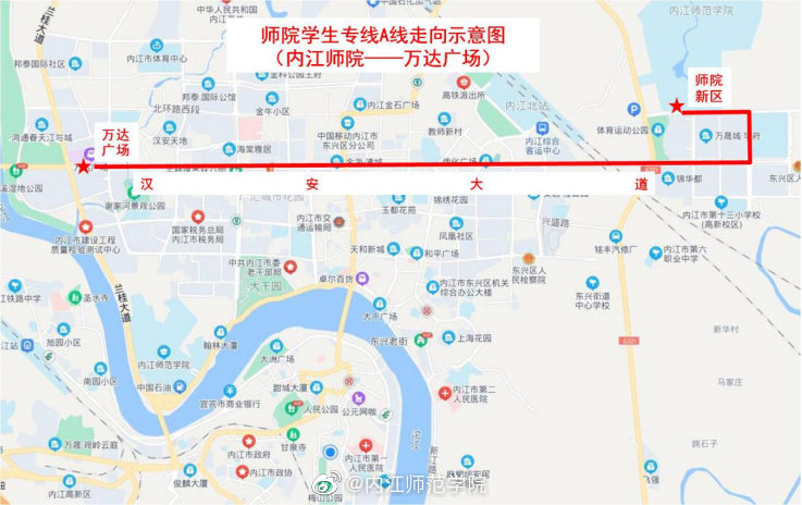 随着内江师范学院高桥校区的投入使用,为给广大师生提供便利的公交出行服务,内江市公共交通集团有限责任公司拟通过常规公交+定制公交模式满足我校师生出行需求,具体线路如下: