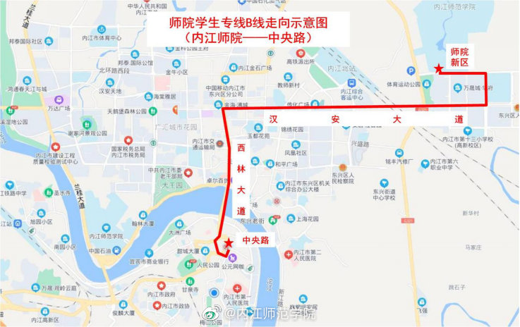 时间:2021-10-12 15:26:26 来源:内江师范学院官网江粉儿从内江师范学院官网了解到,由于内江师院高桥校区(新校区)已投入使用,为方便广大师生,内江市公共交通集团将为其运行这些公交线路。详情如下: