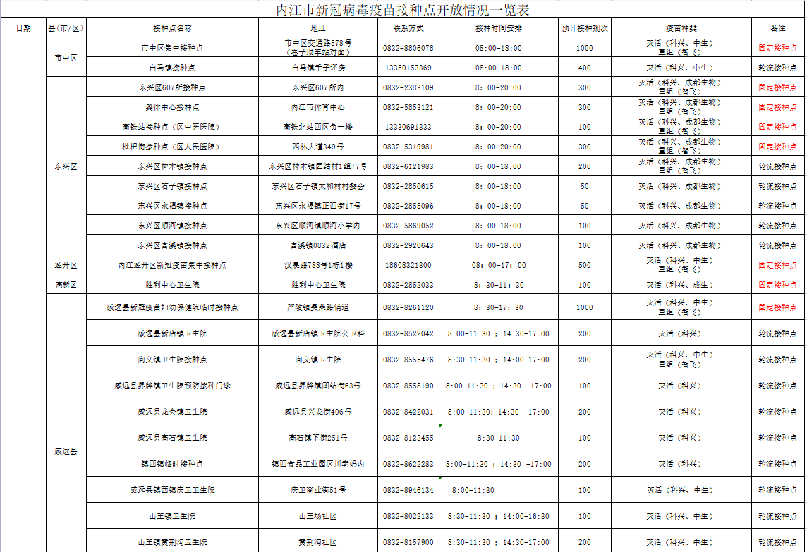 速看!10月30日,内江新冠病毒疫苗接种点开放情况来了
