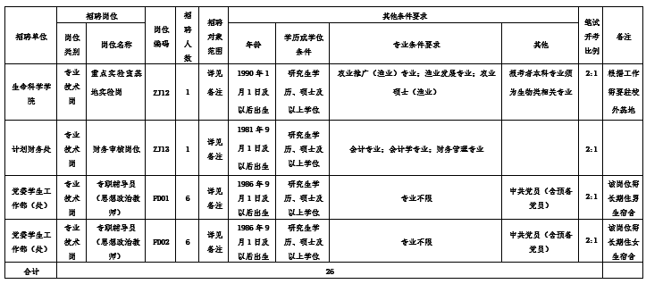 本次招聘均在事业单位经批准设置的岗位内招聘,招聘名额为26名。