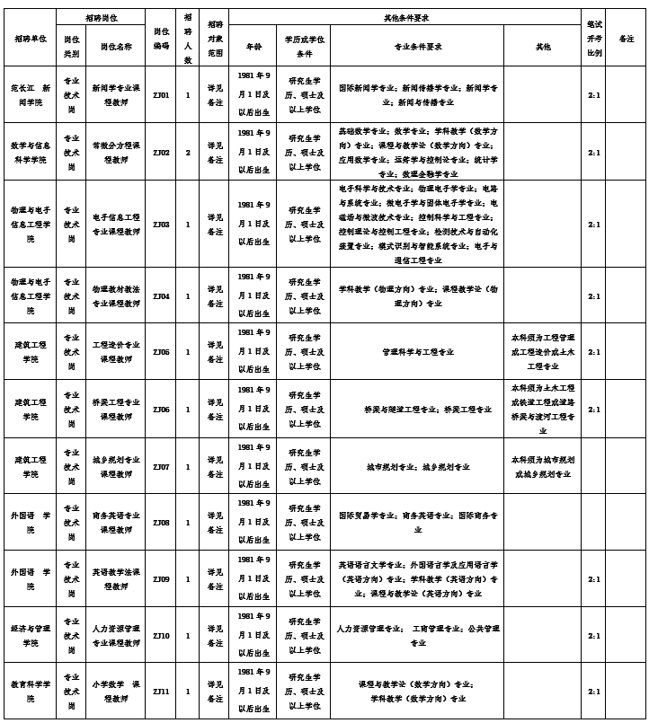 时间:2021-11-12 15:58:23 来源:四川省人力资源和社会保障厅江粉儿从四川省人力资源和社会保障厅了解到,内江师范学院面向社会公开招聘26名工作人员,详情如下: