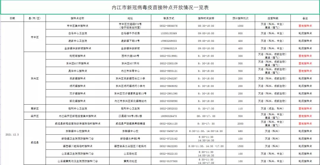 速看!内江12月3日新冠病毒疫苗接种点开放情况来了
