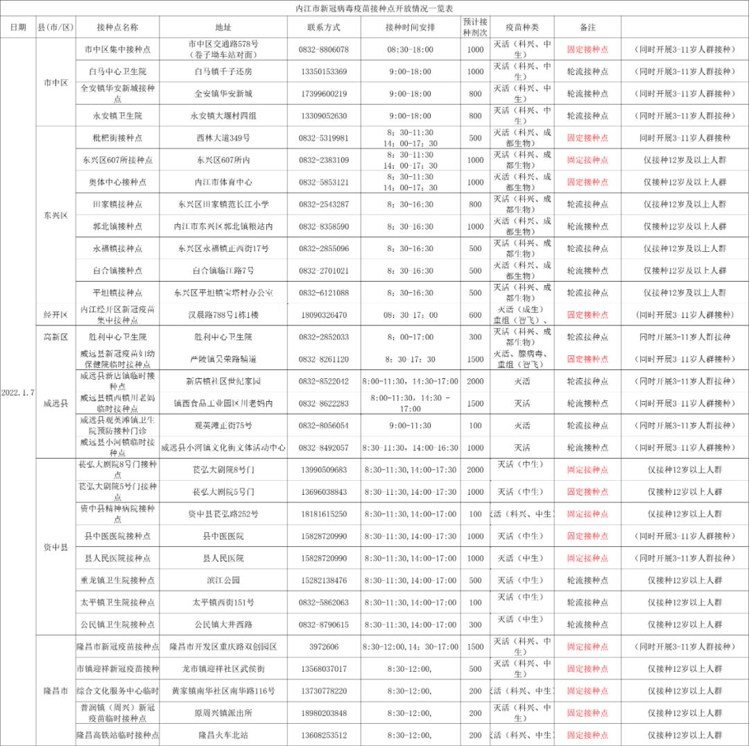 速看!内江1月7日新冠病毒疫苗接种点开放情况来了
