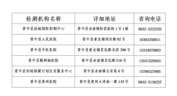 资中县核酸检测机构地址