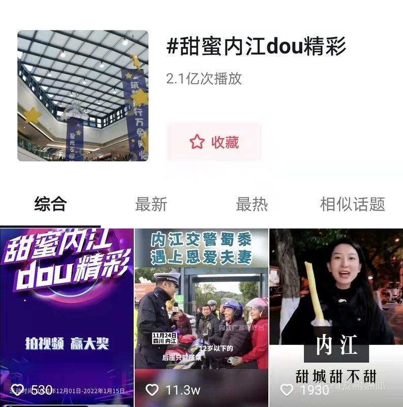 播放量突破2.1亿次!“甜蜜内江Dou精彩”抖音短视频大赛进入评选展播阶段