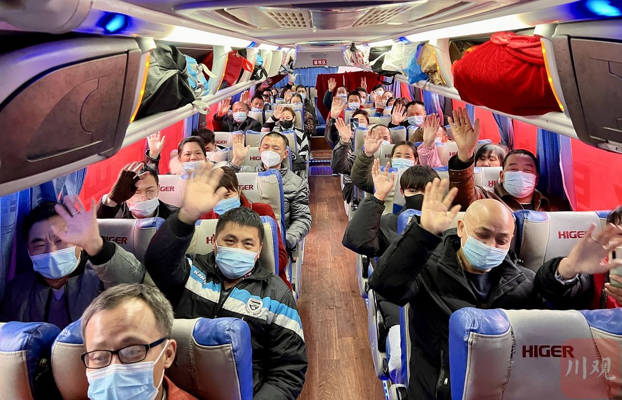 江粉儿注意到,车身挂着“欢送隆昌籍农民工朋友返岗复工”标语,感情浓厚。有的农民工提着一袋土鸡蛋,小心呵护着放进随身携带的包中。