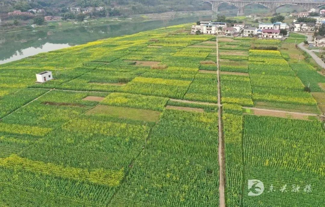 在椑木镇七家嘴的沱江河畔,一泽秀水与黄灿灿的油菜花相映成趣;在碧水青山间,一地金黄,幻化成海,带来了春的喜悦。