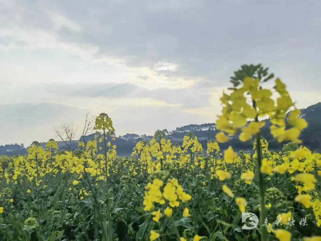 清风吹拂金波涌,飘溢醉人浓郁香。远有青山,近有花海,还有静默一旁的乡村,目之所及皆是美景,漫步其间,让人心生欢喜,笑逐颜开。