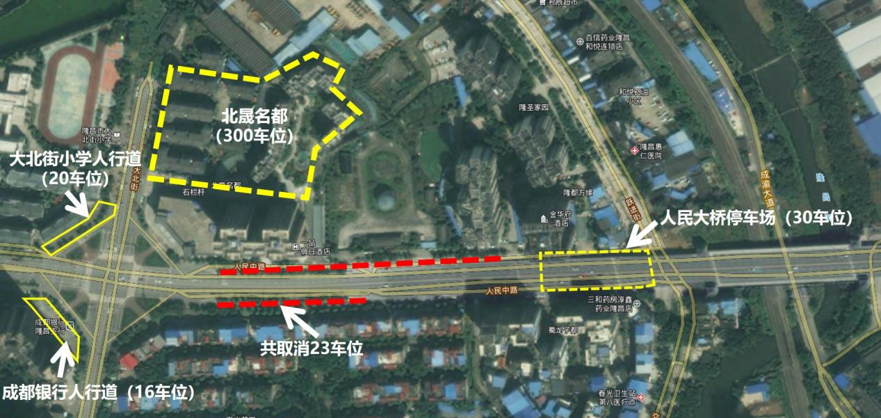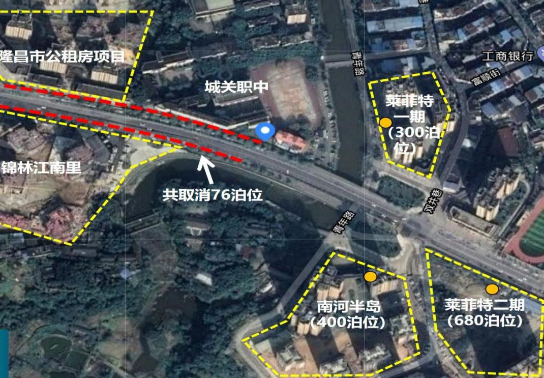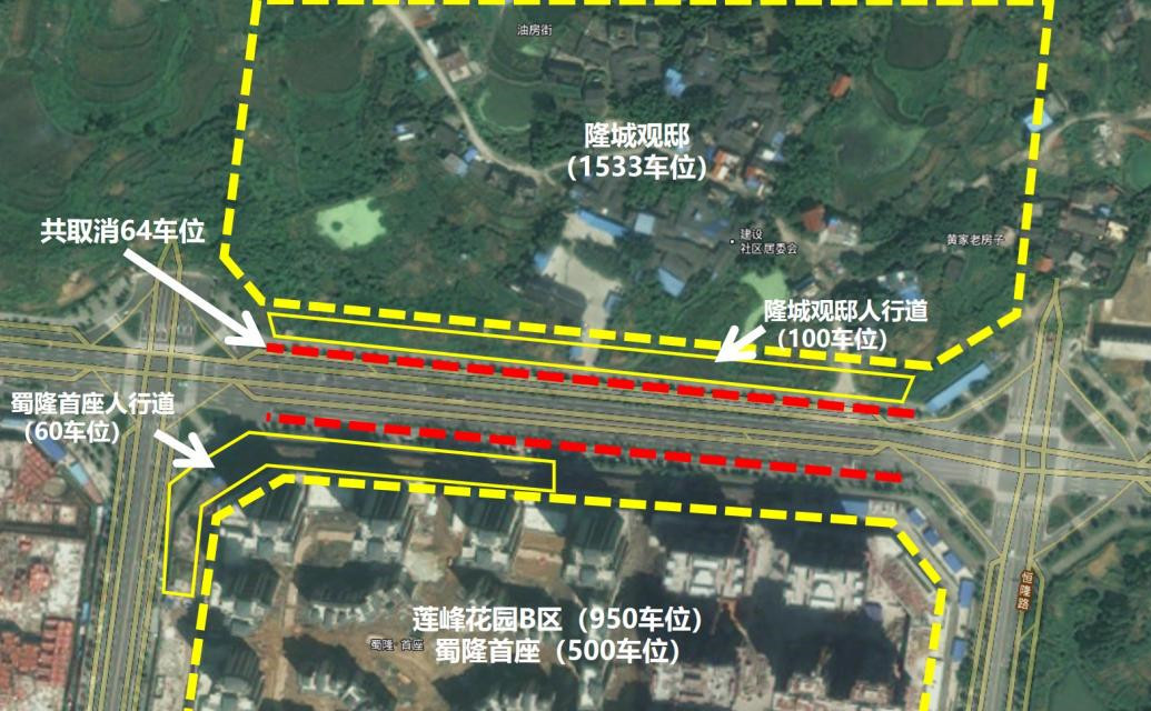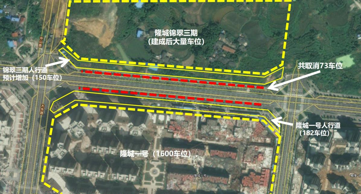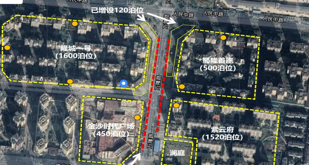 ▲隆城一号、蜀隆首座人行道120泊位(距离100米内)