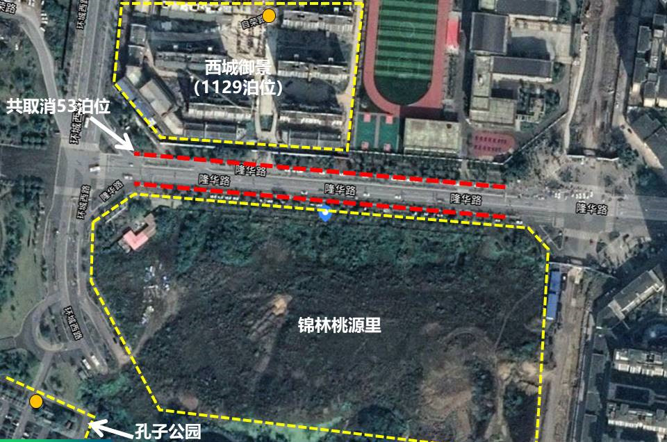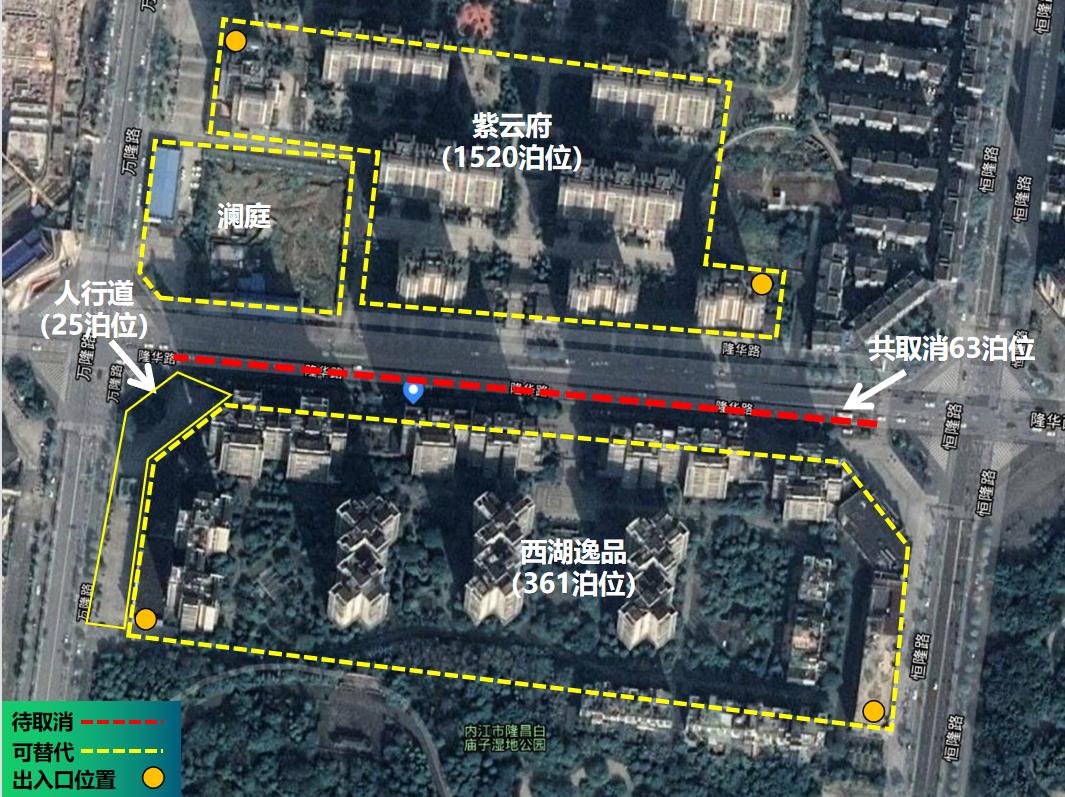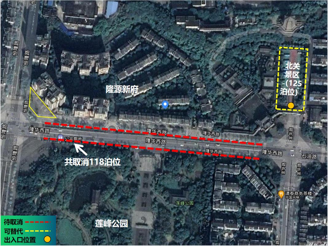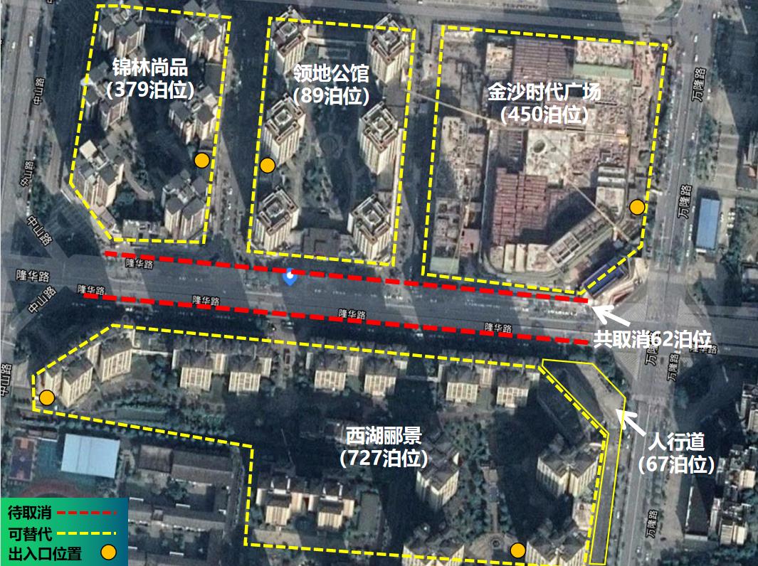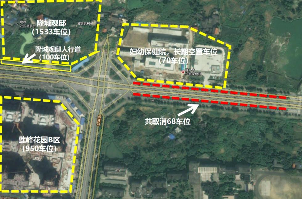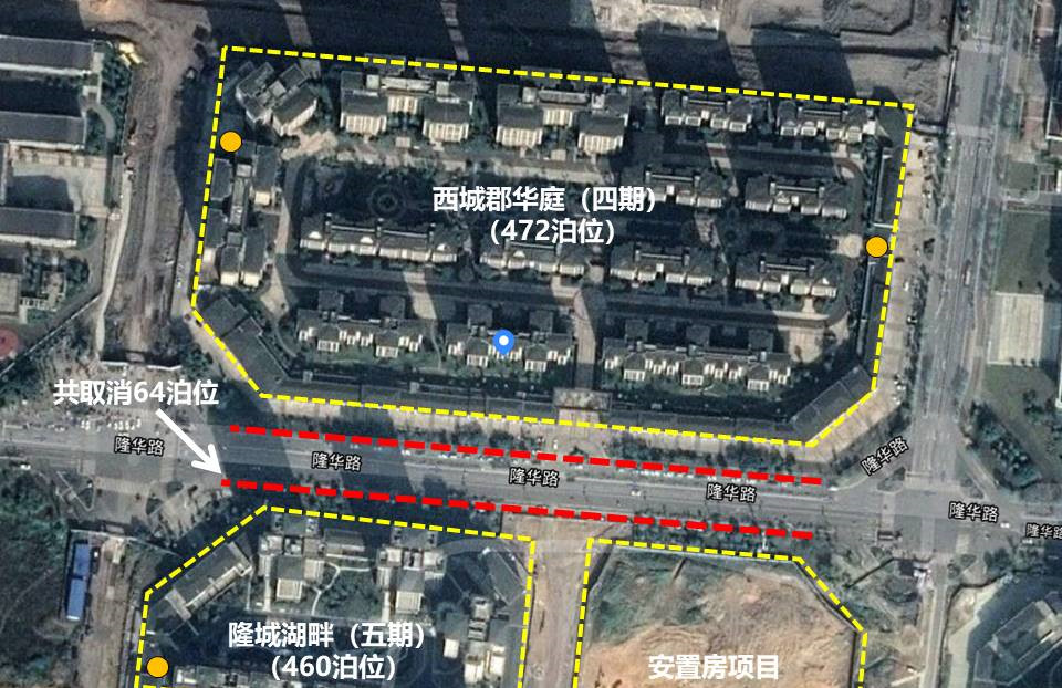 ▲隆城一号、蜀隆首座人行道120泊位(距离100米内)