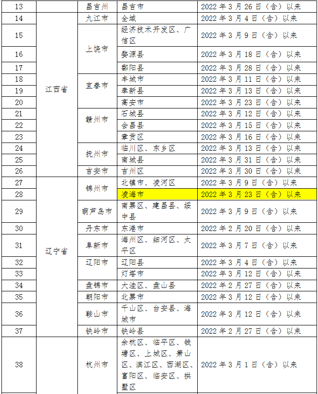 (四)3月29日以来,有上海市、吉林省除中高风险地区以外旅居史的来(返)内人员。
