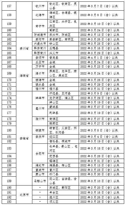 三、陆地边境口岸城市(与香港、澳门有口岸相连的除外)入(返)内人员需提供48小时内核酸检测阴性证明,陆地边境口岸城市名单见下表。
