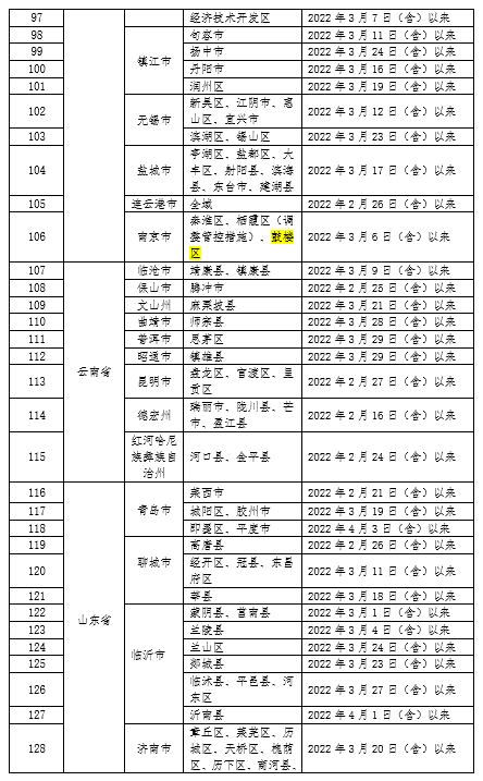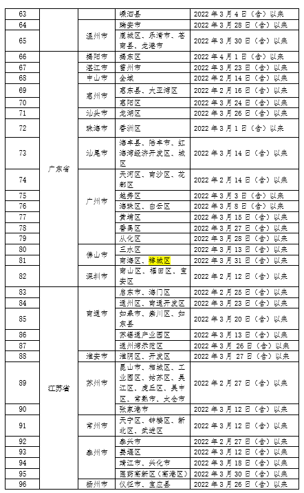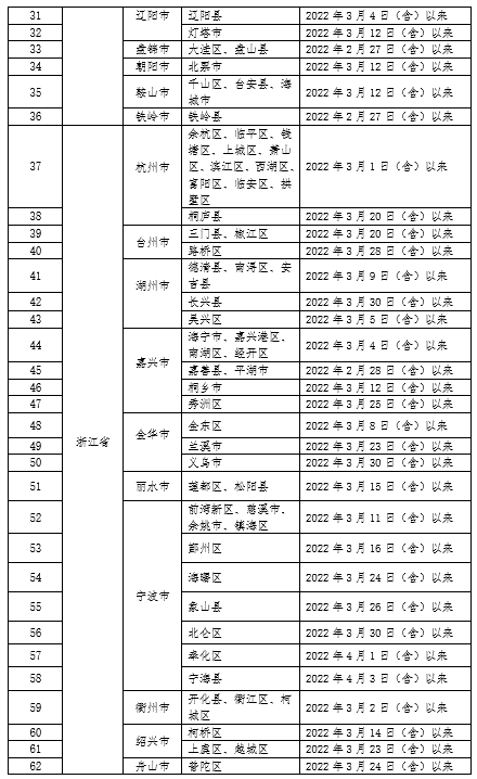 江苏省宿迁市、安徽省六安市、新疆乌鲁木齐经开区(头屯河区)、广东省佛山市禅城区、江苏省南京市鼓楼区、山东省济南市开发区、四川省成都市蒲江县、北京市海淀区、福建省宁德市周宁县、河北省石家庄市鹿泉区、湖北省武汉市江岸区、内蒙古通辽市科尔沁区、宁夏吴忠市同心县。