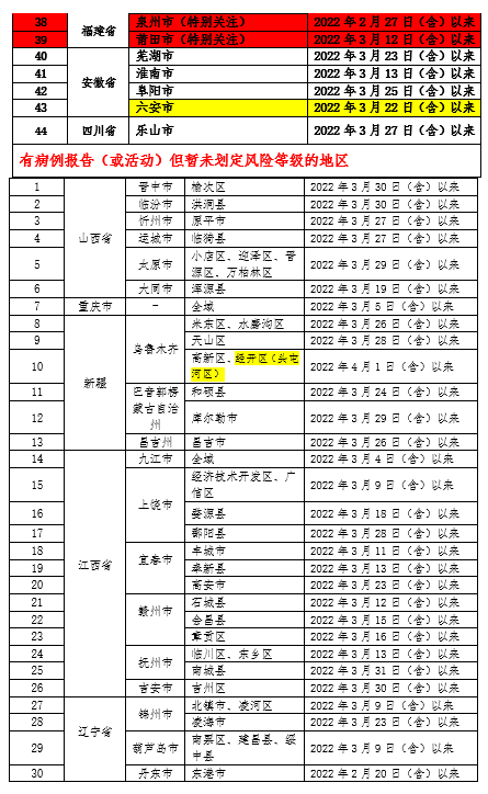 管控措施:实施集中隔离,期间每3天进行1次核酸检测,直至离开风险地区满14天为止。