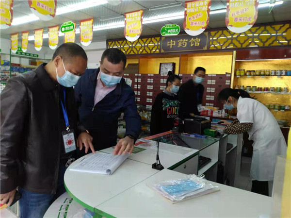 4月7日,内江市资中县市场监督管理局迅速行动,成立工作组开展专项检查,重点检查零售药店是否严格落实“四类”(退热、止咳、抗病毒、抗菌素)药品实名登记销售、上报制度,是否履行顾客进店戴口罩、测体温、查验健康码、行程码、询问旅居史以及经营场所消毒等常态化防控措施。