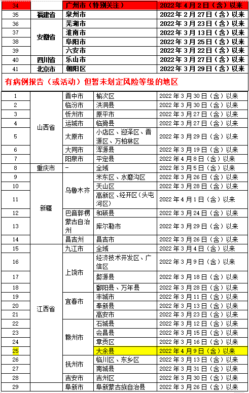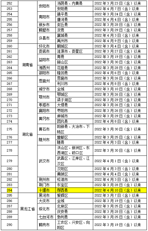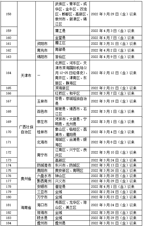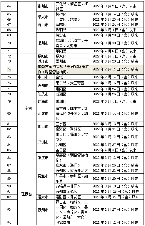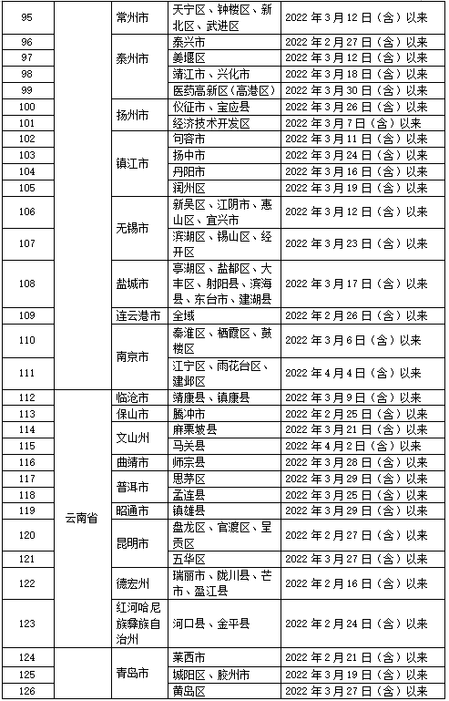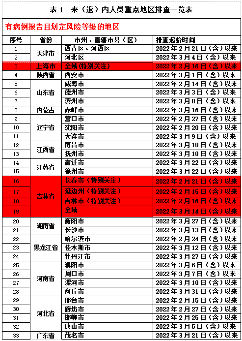 2022年4月12日,全国重点地区和交通工具自查表