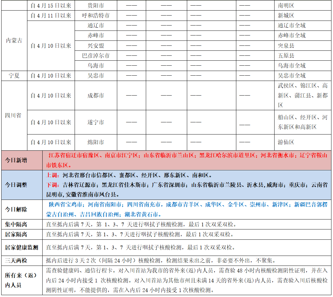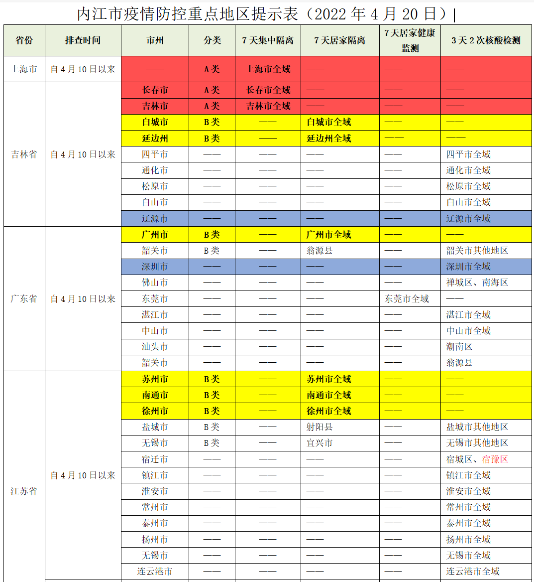 内江市疫情防控重点地区提示表(2022年4月20日)