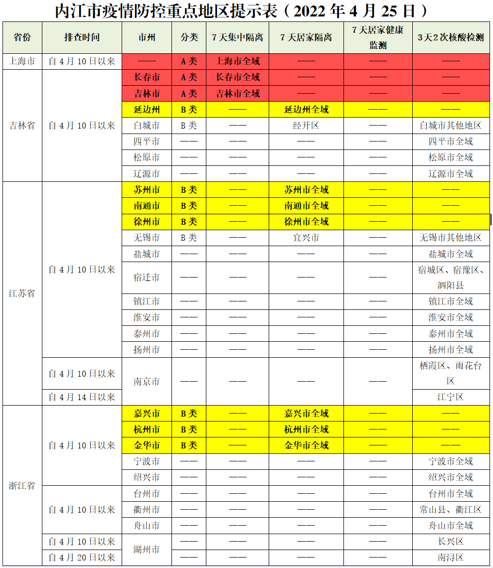 内江市疫情防控重点地区提示表(2022年4月25日)