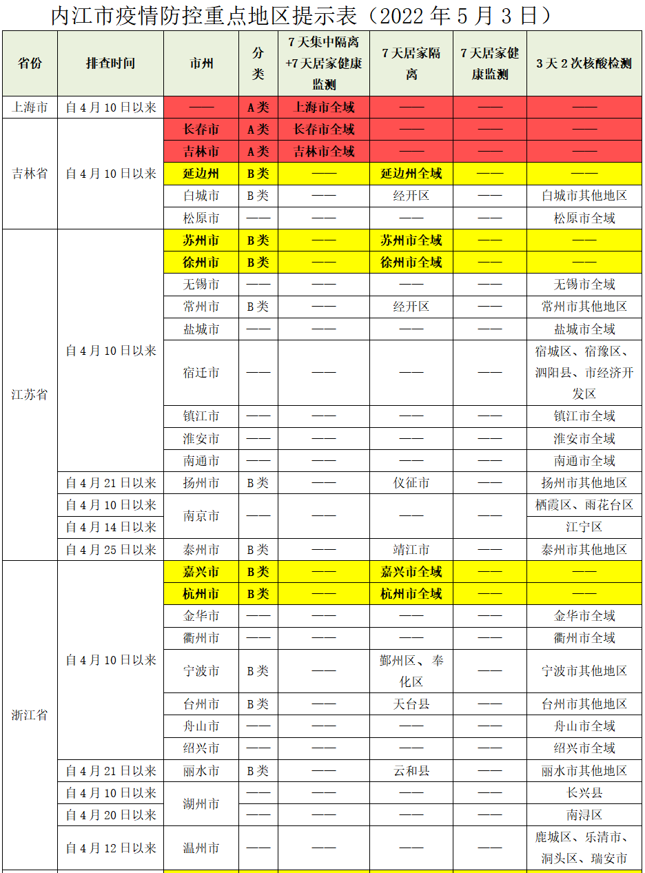 内江市疫情防控重点地区提示表(2022年5月3日)