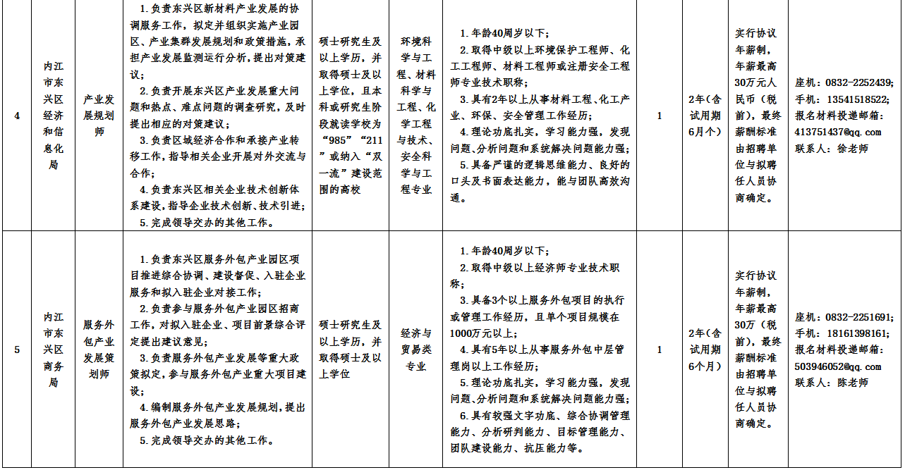 (五)内江市东兴区商务局服务外包产业发展策划师1名;