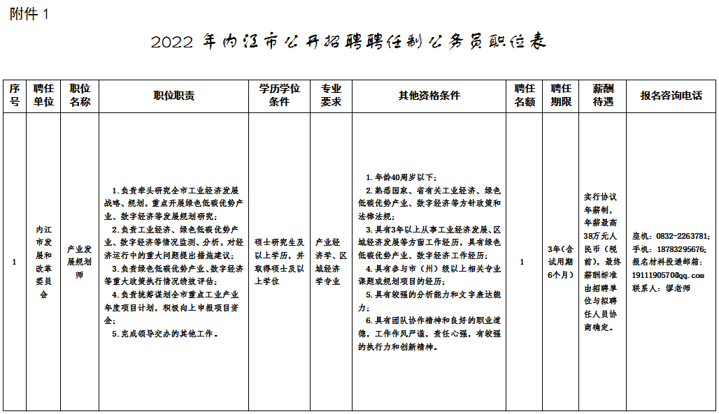 (一)内江市发展和改革委员会产业发展规划师1名;