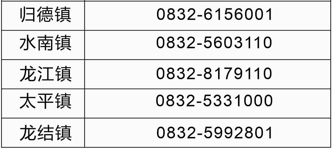 请参考下方各区县电话:
