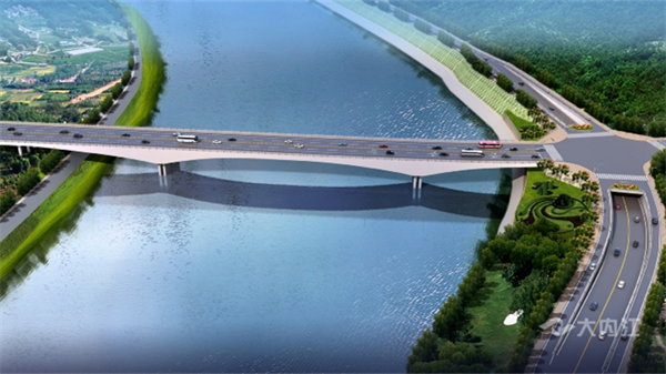 该项目总投资2.66亿元,起于市中区白马镇门庭路,止于东兴区椑木镇水心坝村,全长约1842米。其中,桥梁为双向4车道,全长415米,主跨跨度达195米,一跨过江,设计时速为60公里/小时。项目建成后,将成为连通市中区、东兴区的又一条纽带,可以进一步改善区域交通出行条件。