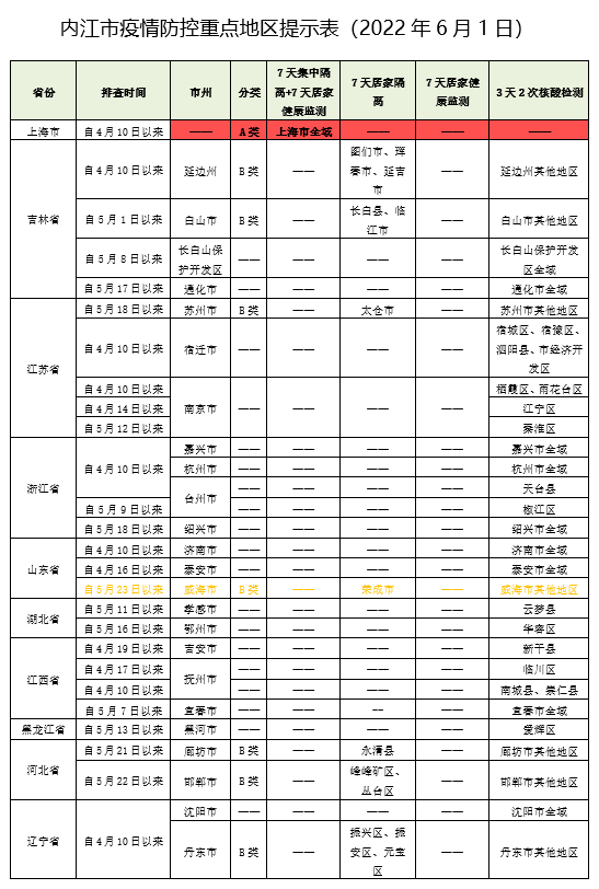 内江市疫情防控重点地区提示表(2022年6月1日)