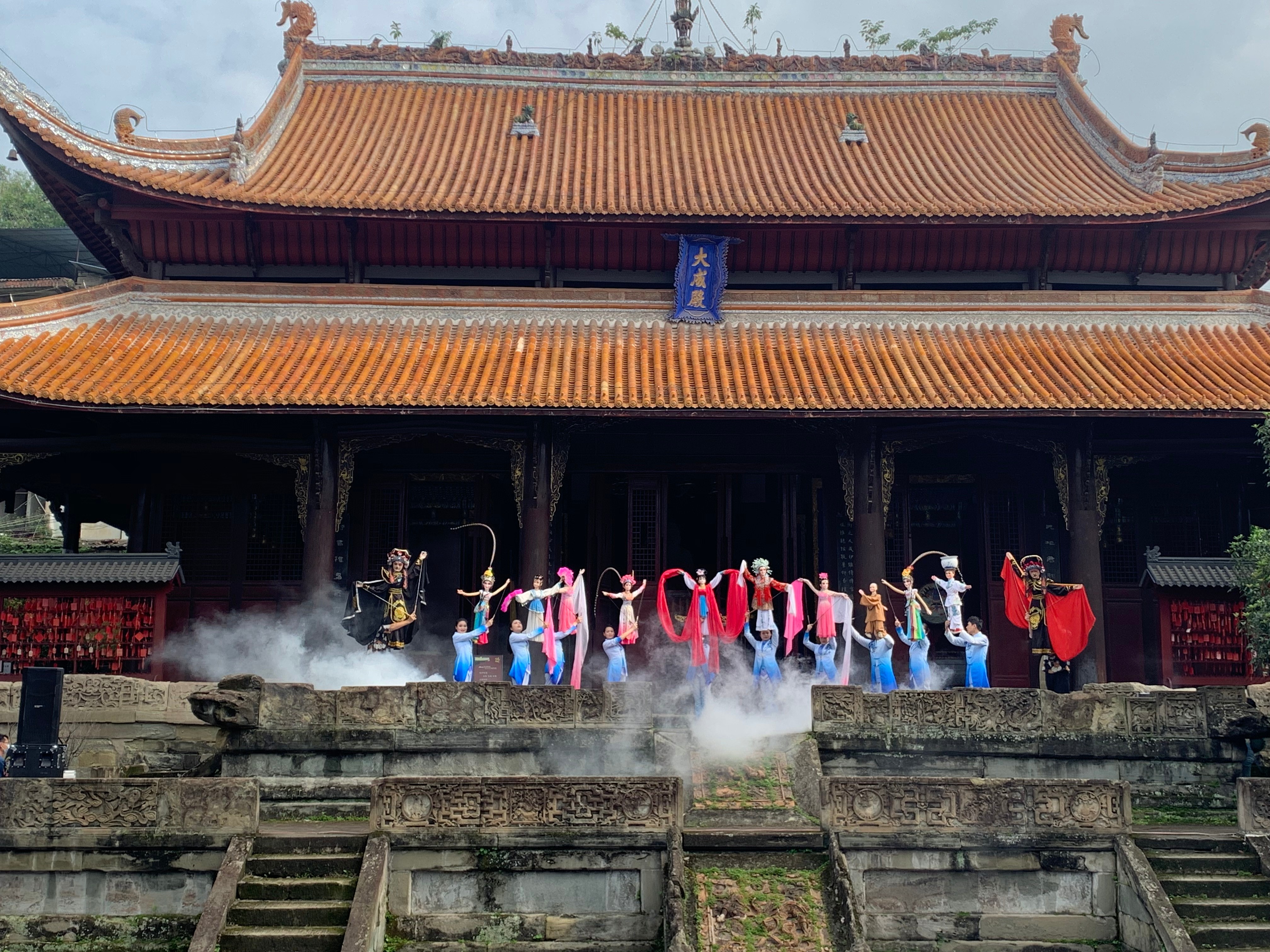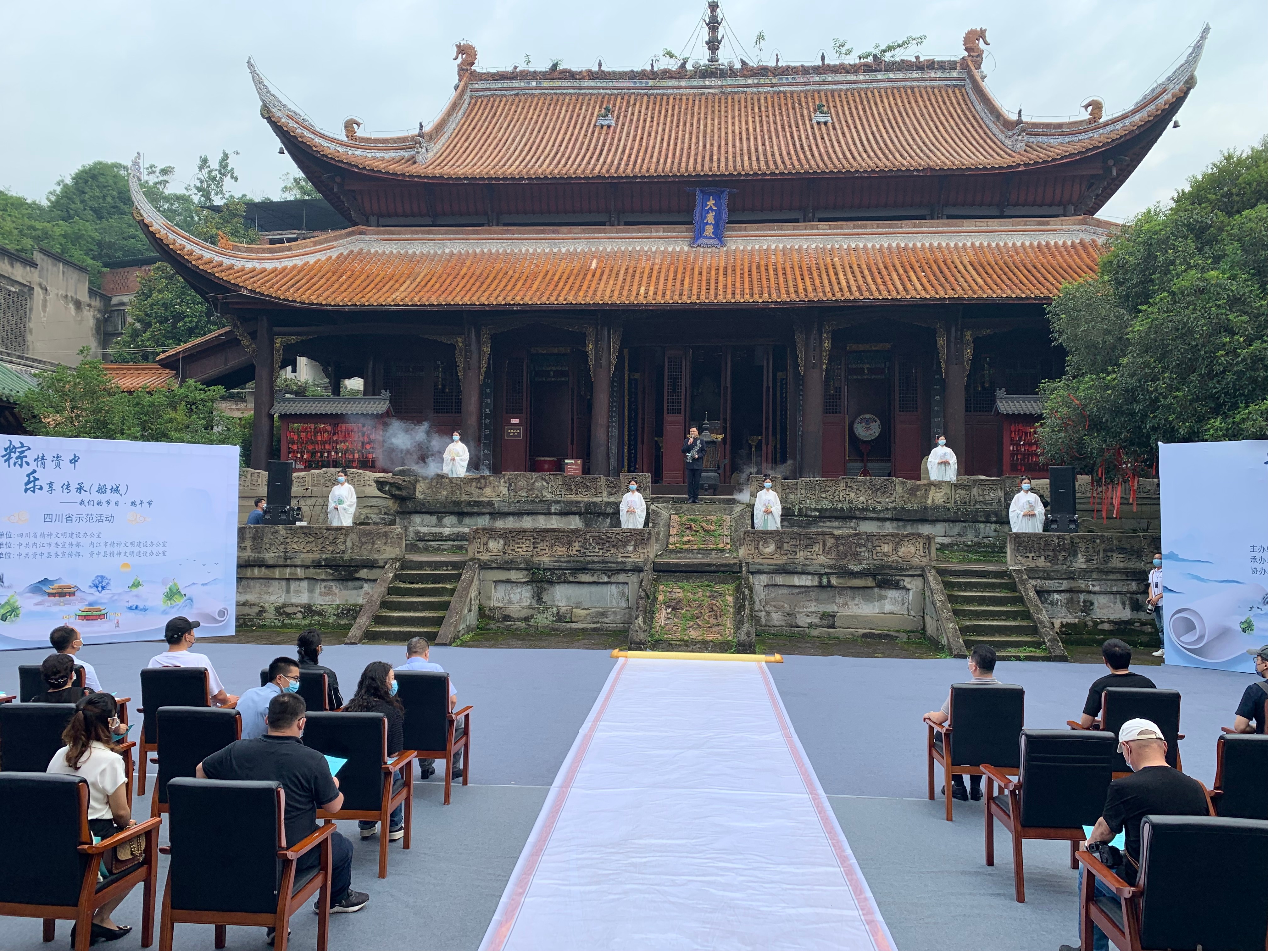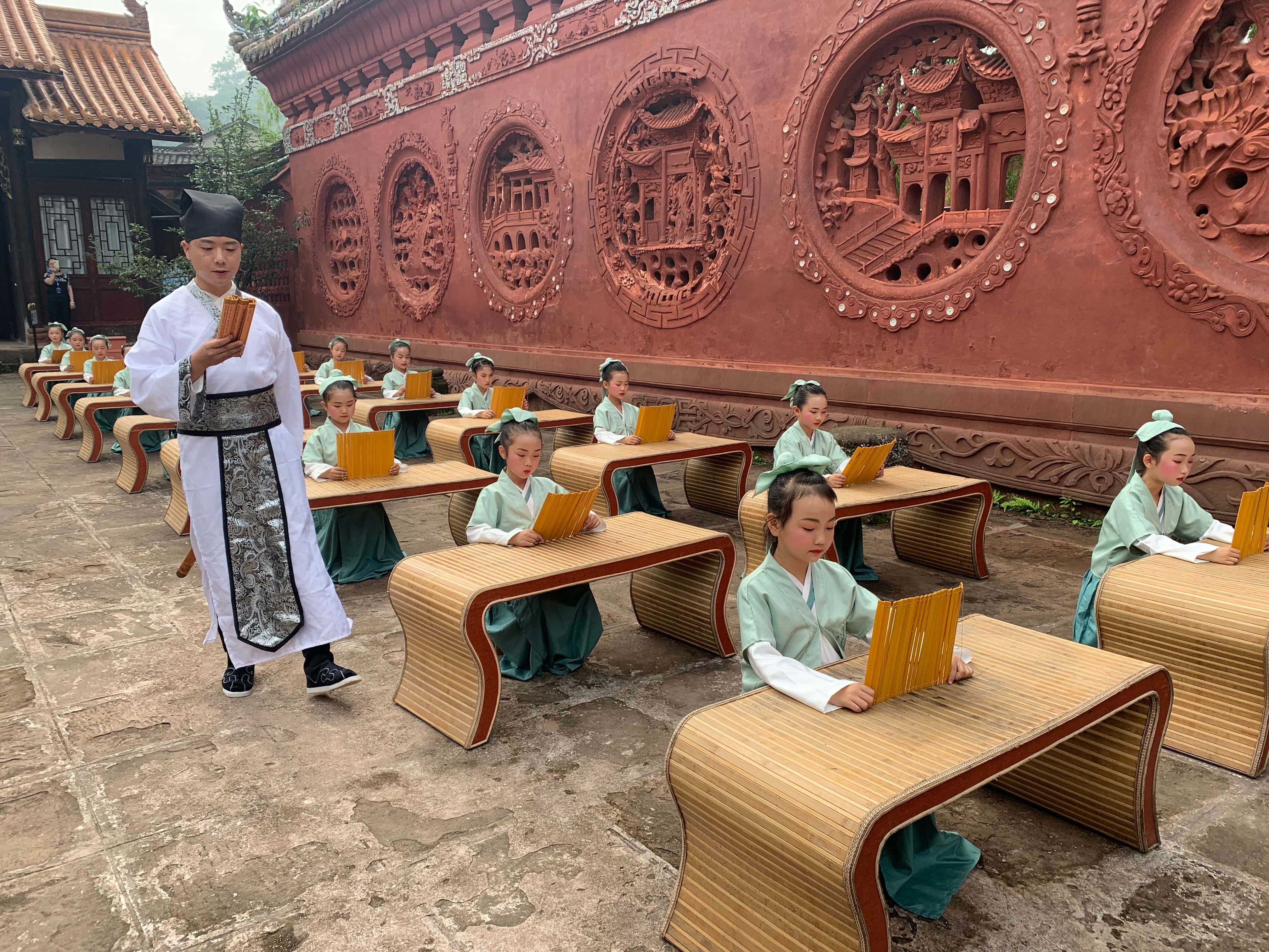 资中拥有浓厚的国学文化和民俗文化,本次活动特别选在了全国重点文物保护单位——文庙、武庙举办,这里也成为了当地学生们的研学实践基地。通过参与节目《夫子传教》的表演,朗诵爱国诗人屈原的名篇《天问》,让小小的表演者们也感受到了传统国学文化的熏陶。