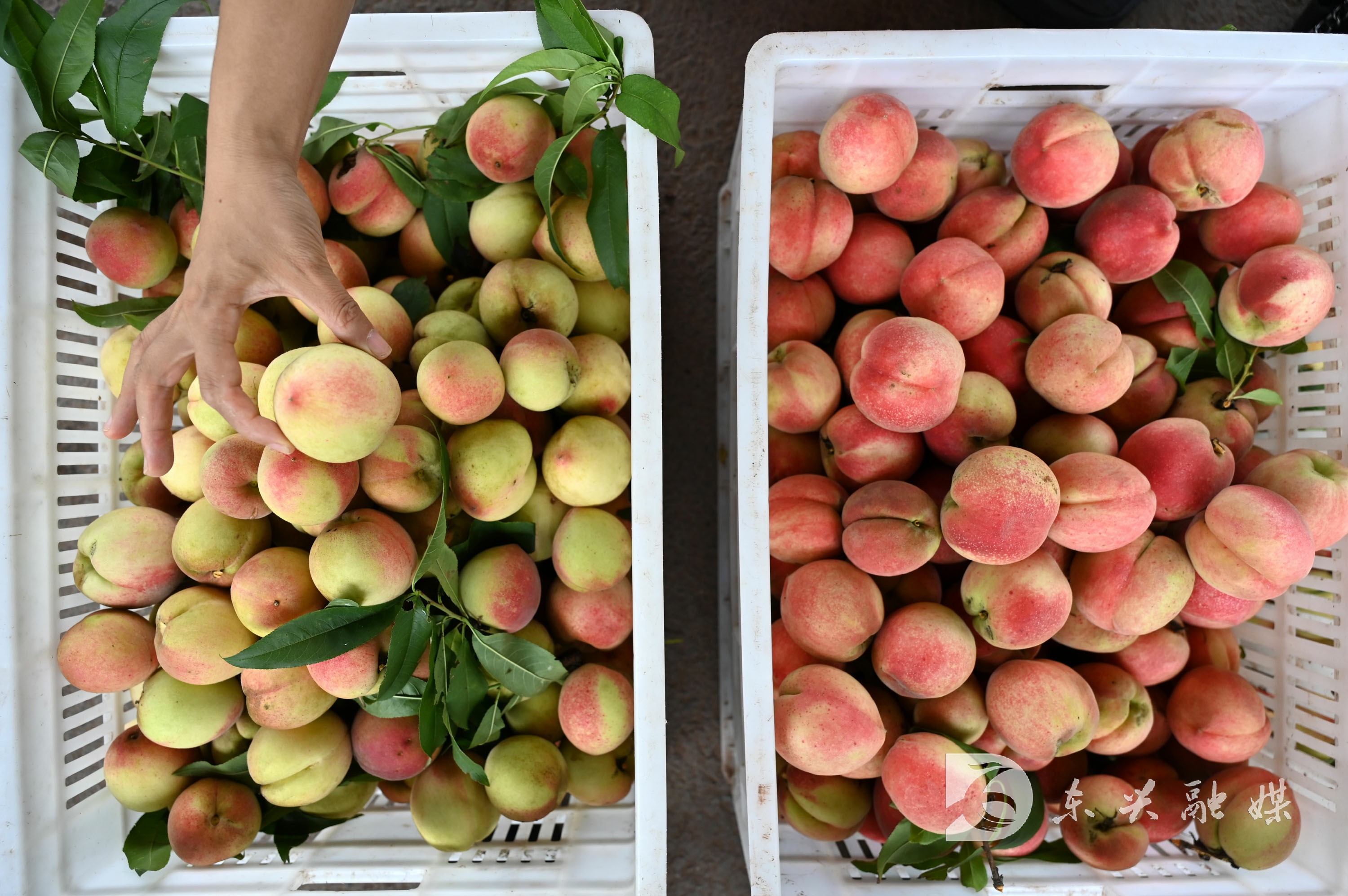 当前,东兴区椑木镇长丰村森太桃园进入丰收季,经过嫁接和技术改良,桃子和李子同长一株树上,既有红彤彤的桃,还有青翠碧绿的李,以及名贵的“蓝宝石”,形成奇特的“桃李同源”景象,吸引各地游客纷纷前来采摘体验,产品深受市场青睐。