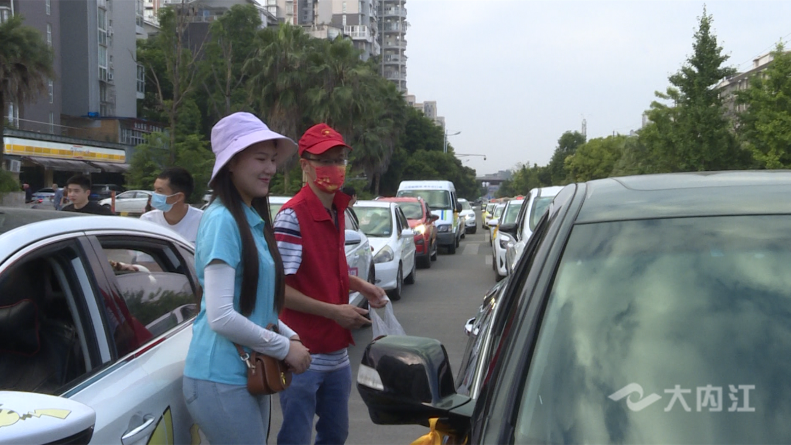 同样,在东兴区东兴大道金山城小区送考点外,爱心送考车辆也排起了长队,志愿者们早早来到现场等待考生。为了让考生们心情保持放松,志愿者们还特意准备了糖果,祝愿他们旗开得胜。