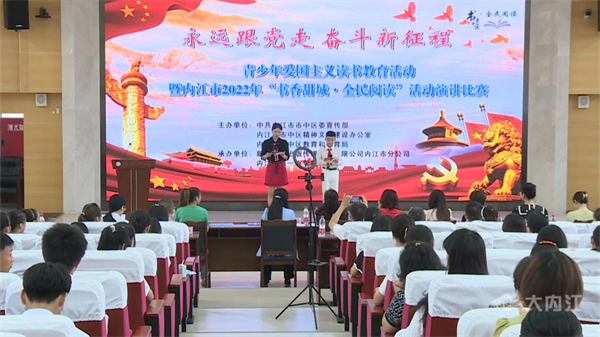 6月21日,内江市市中区组织开展“永远跟党走 奋斗新征程”青少年爱国主义读书教育活动暨内江市2022年“书香甜城·全民阅读”活动演讲比赛,来自全区的31名选手分为小学组和中学组展开角逐。