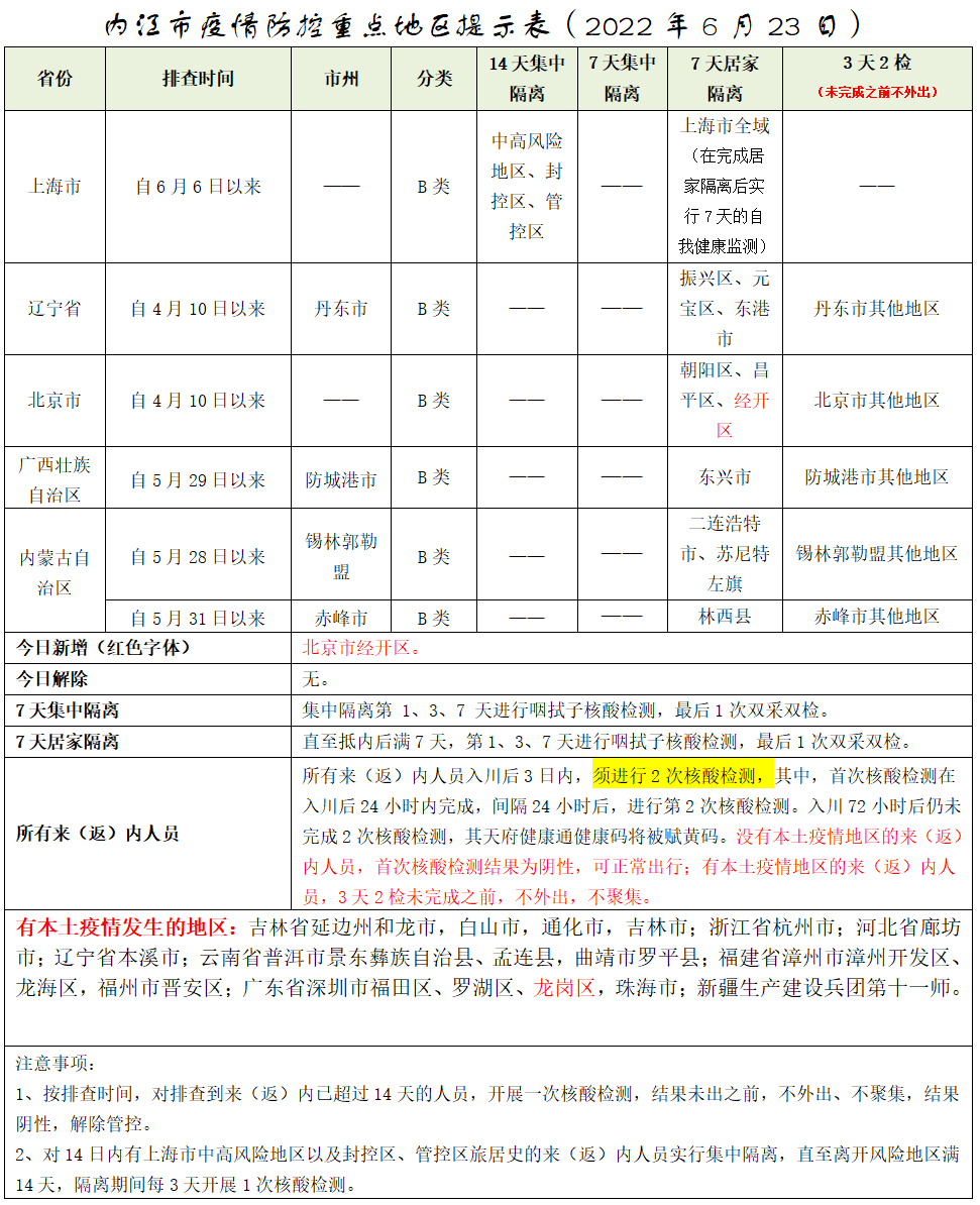 内江市疫情防控重点地区提示表(2022年6月23日)