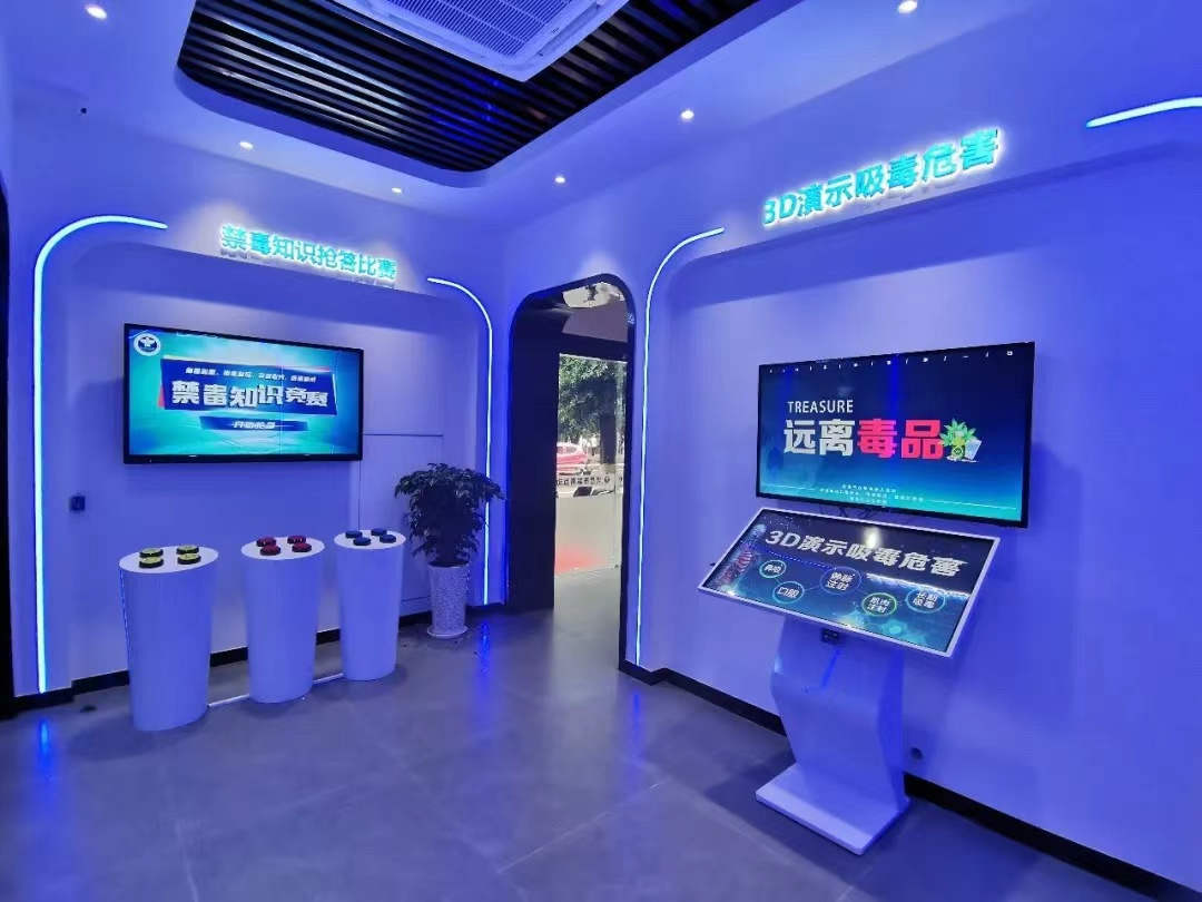 毒品危害区,利用数字媒体、互动科普体验的方式进行禁毒宣传教育,在互动中学习禁毒相关法律法规,毒品预防知识,自觉做到拒绝毒品、远离毒品。