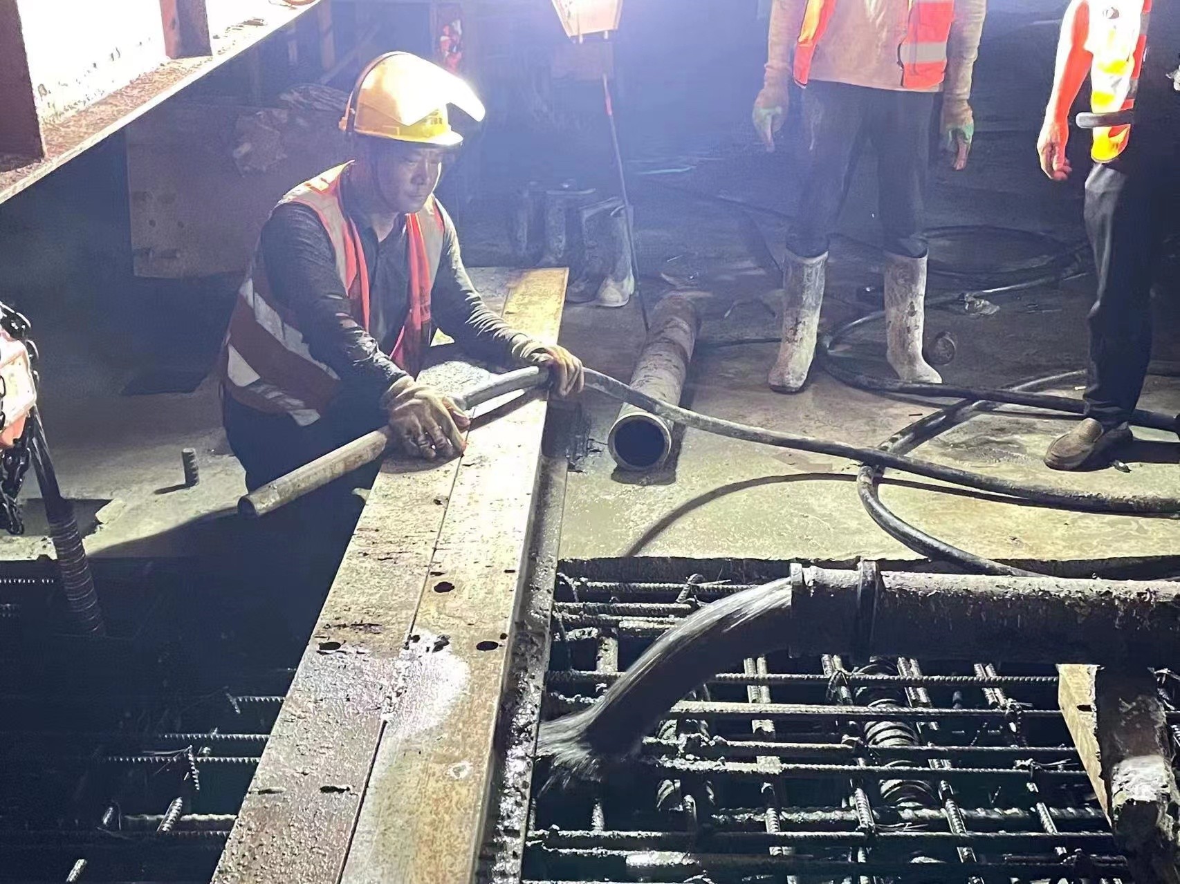 晚上10点30分,随着最后一方混凝土浇筑完成,连续刚构桥面左幅成功合龙。而前不久桥面右幅已经合龙,桥面全幅成功合龙,标志着内大高速离通车又进一步。