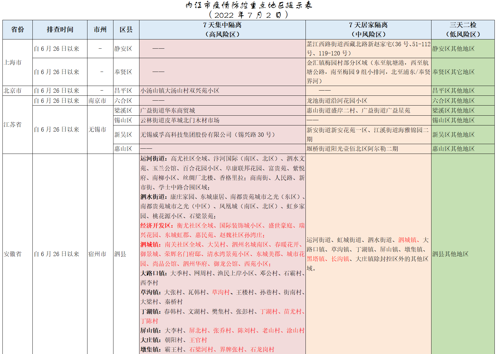 内江市疫情防控重点地区提示表(2022年7月2日)
